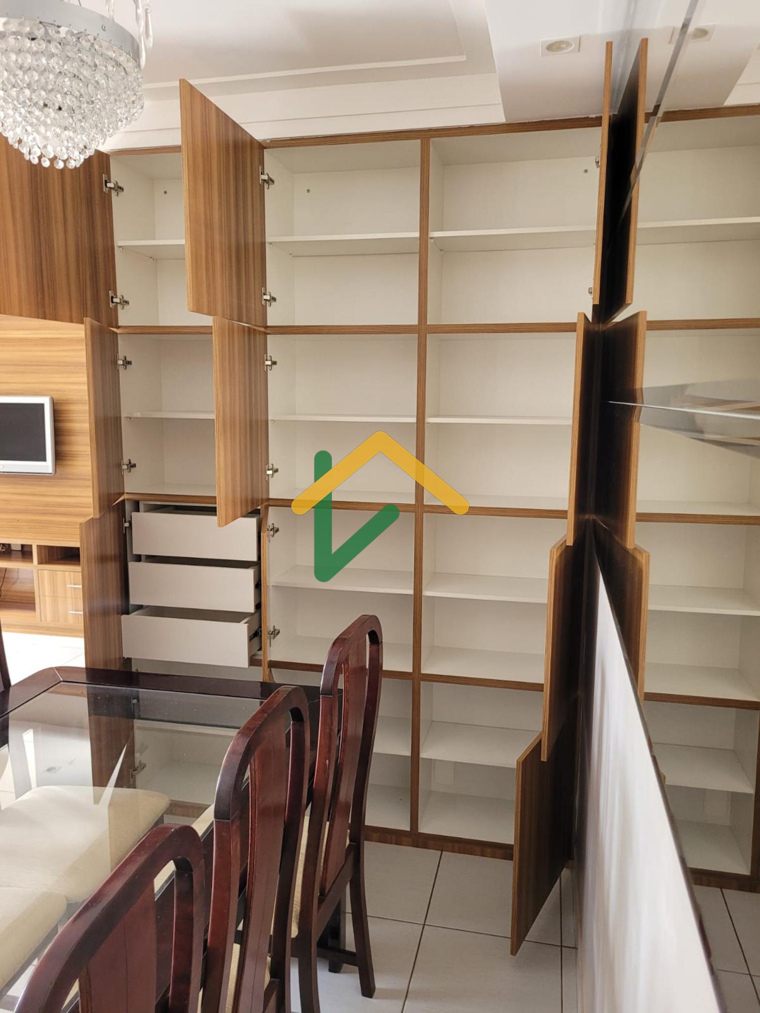 O imóvel destaca-se por ser rico em armários planejados e pela sua planta versátil e bem distribuída: