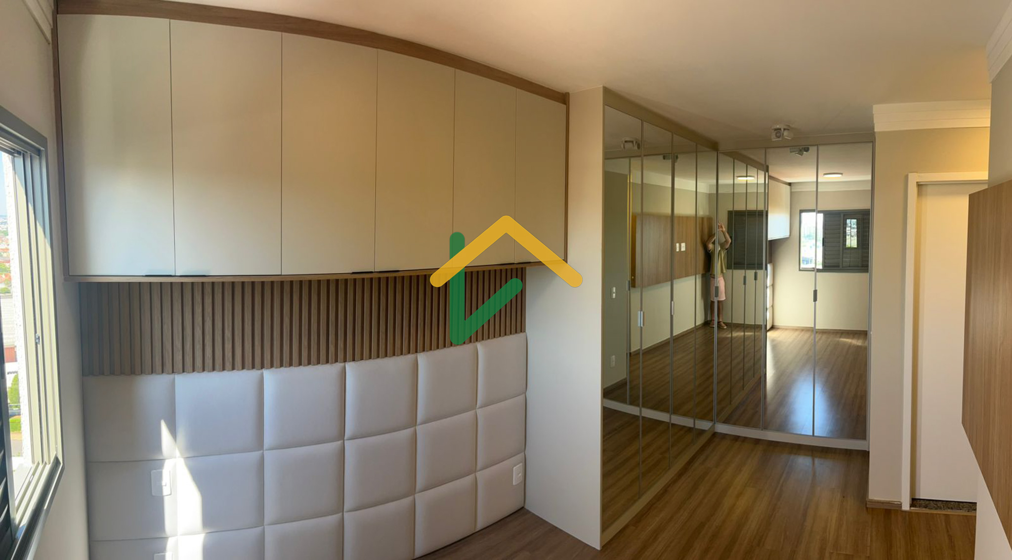 ✔ Suíte com closet (armários com portas espelhadas)