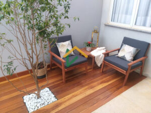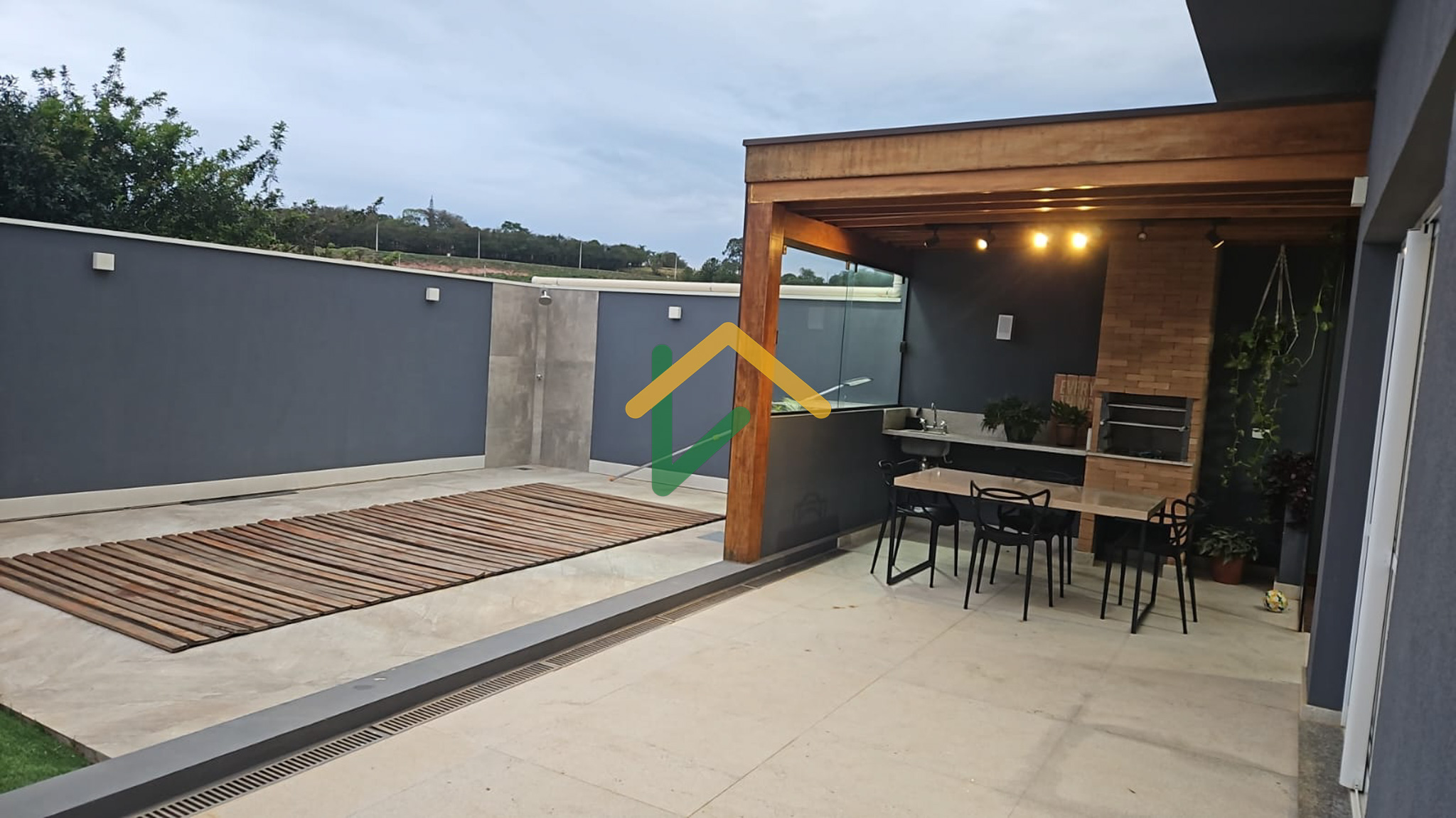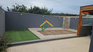 Lavabo interno e quintal com gramado sintético