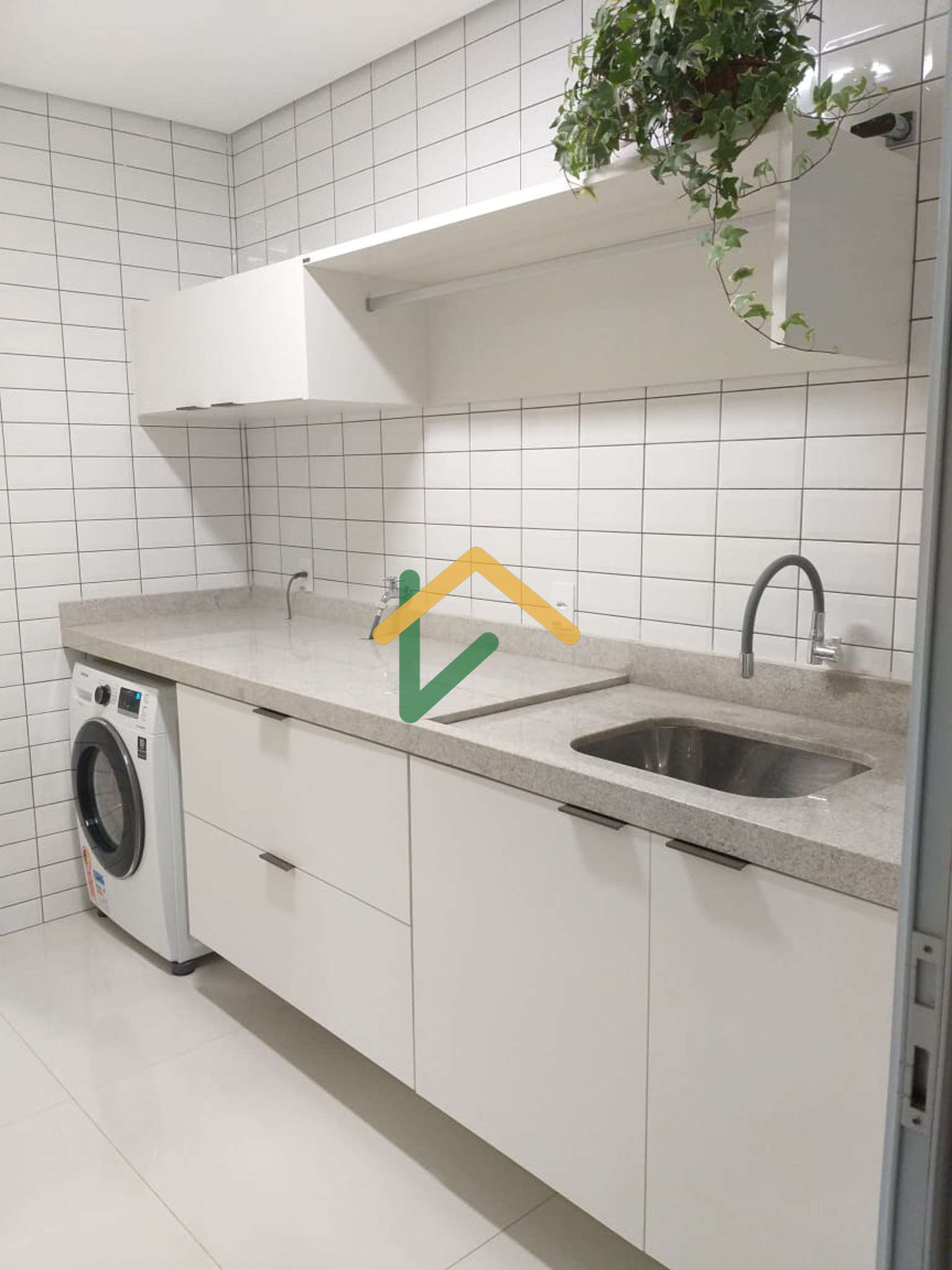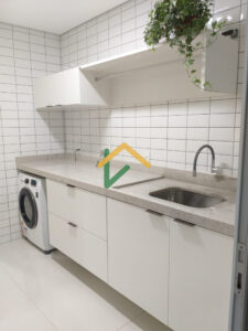 Lavanderia interna com armários + quarto e banheiro de apoio