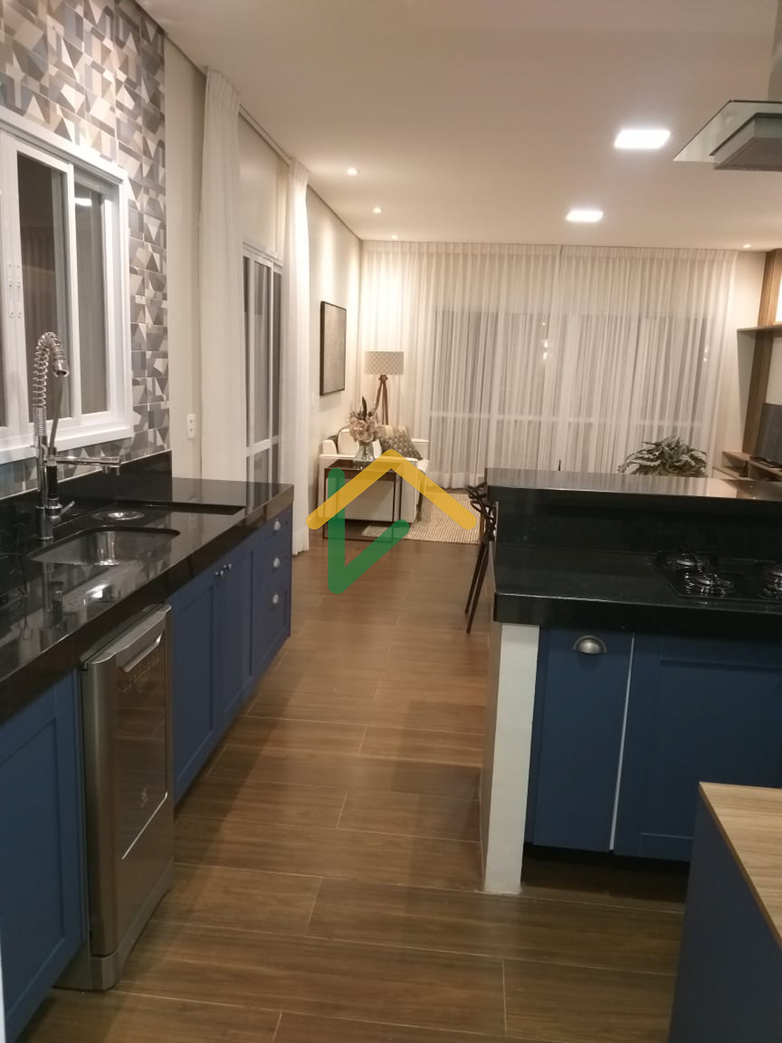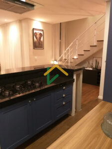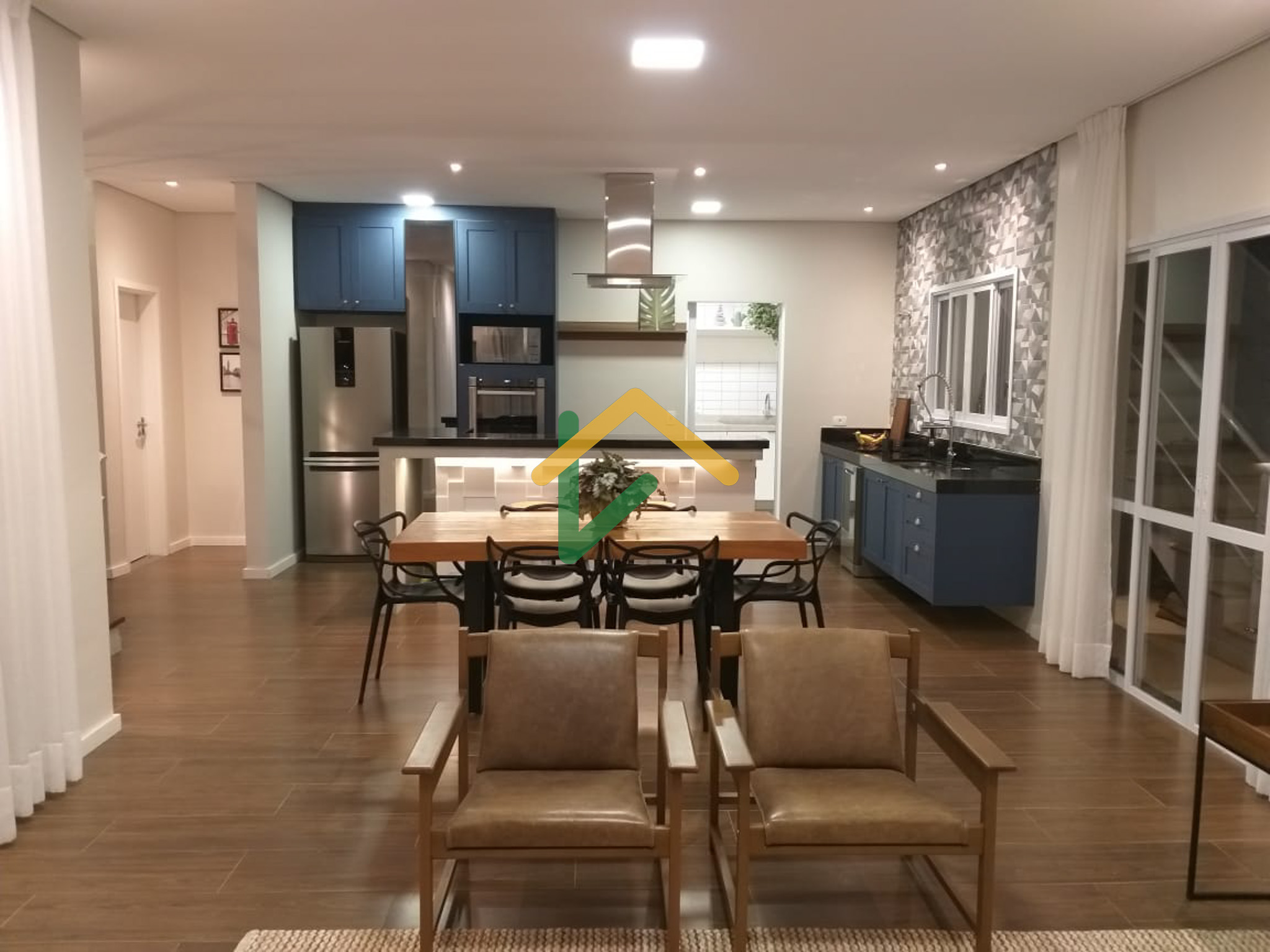 Ambiente integrado: cozinha com ilha + sala de estar + sala de jantar