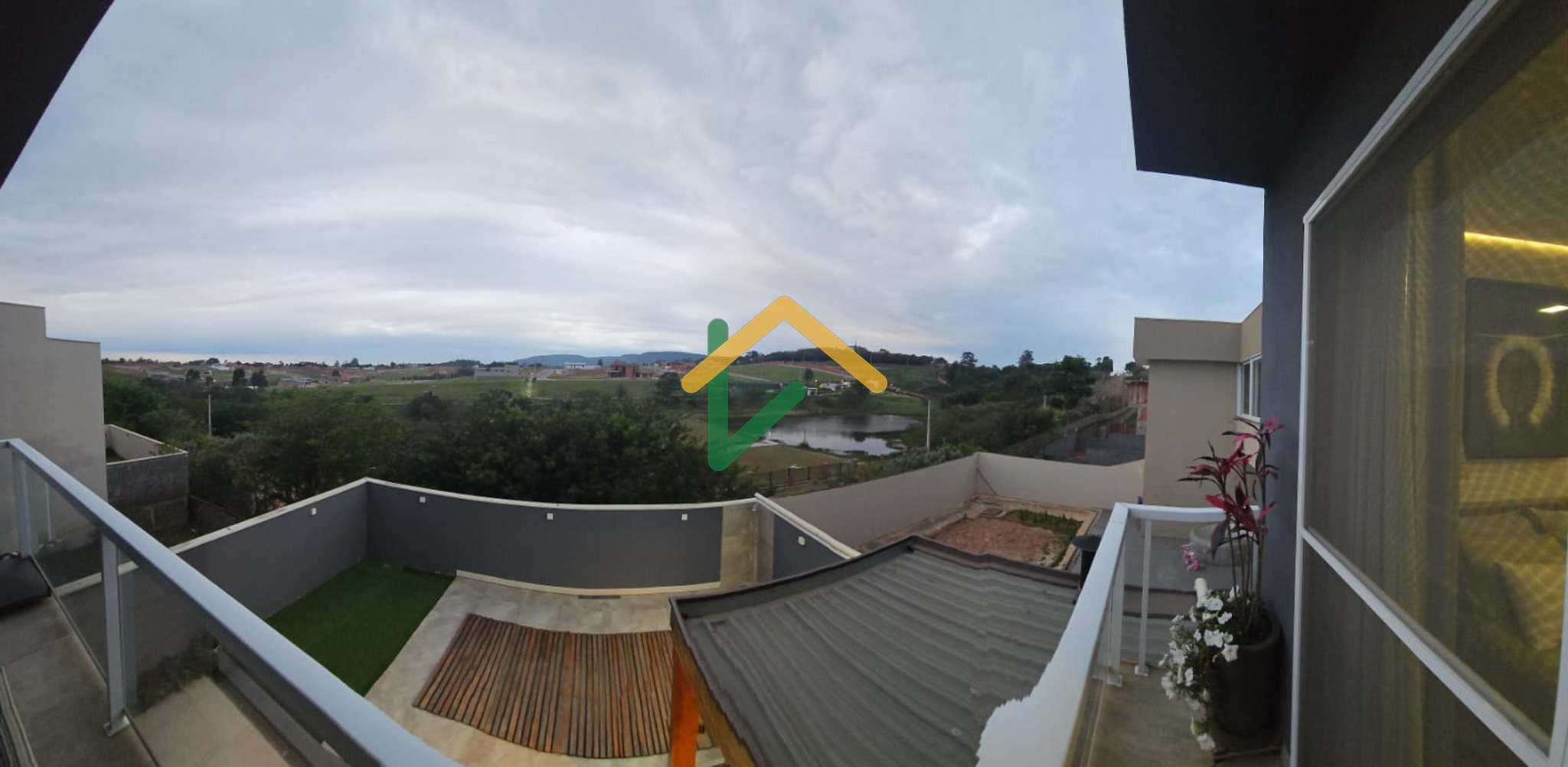 Vista cinematográfica da sacada da suíte principal - Lago + Serra do Japi